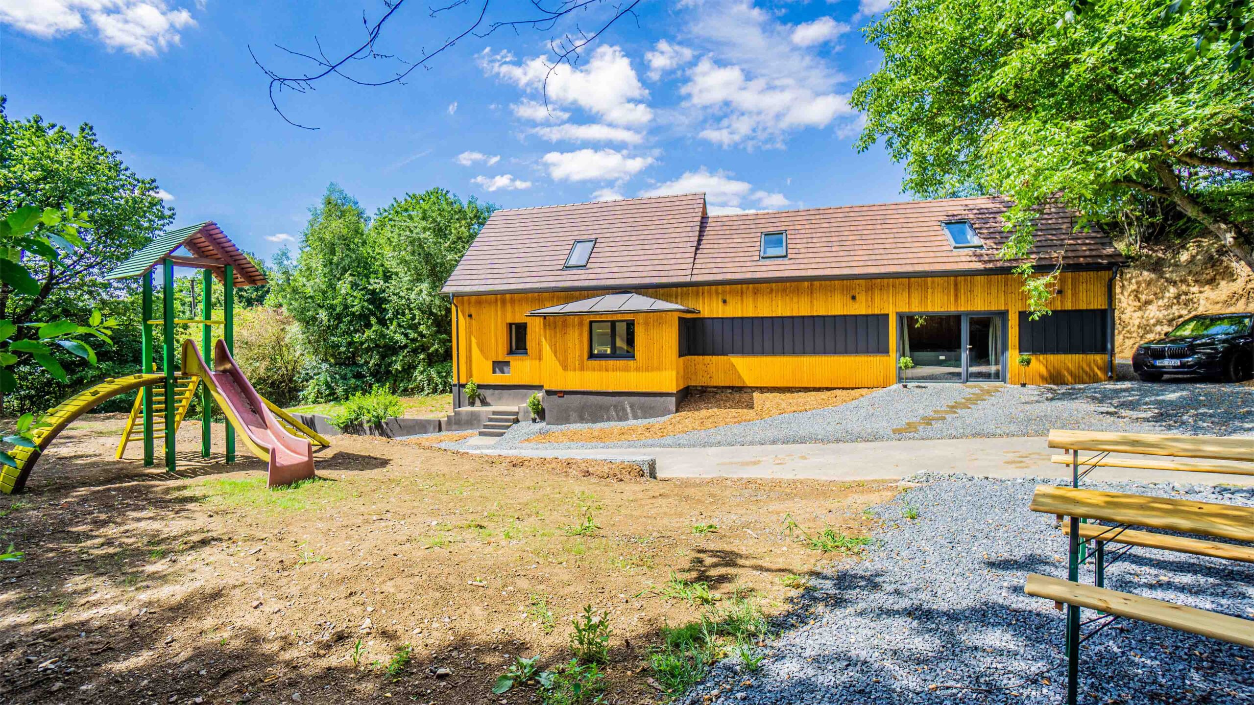 Nabízíme vám nově zrekonstruovaný rodinný dům s dispozicí 5+kk a výměrou 188 m2. Dům má dvě patra a jeho součástí je kompletně vybavené wellness, dětské hřiště, udírna a stodola s posezením. Pozemek s celkovou plochou 1 070 m2.