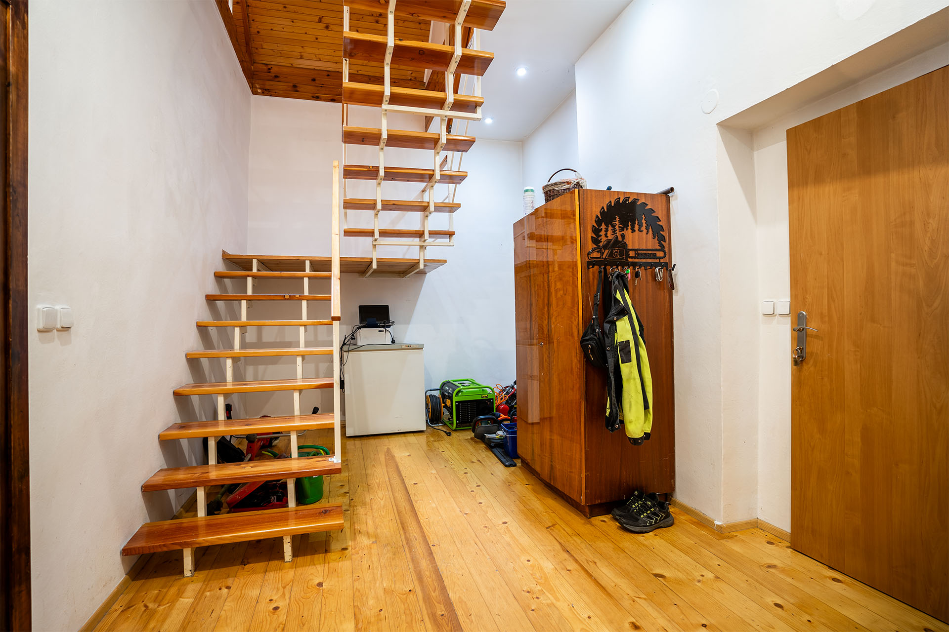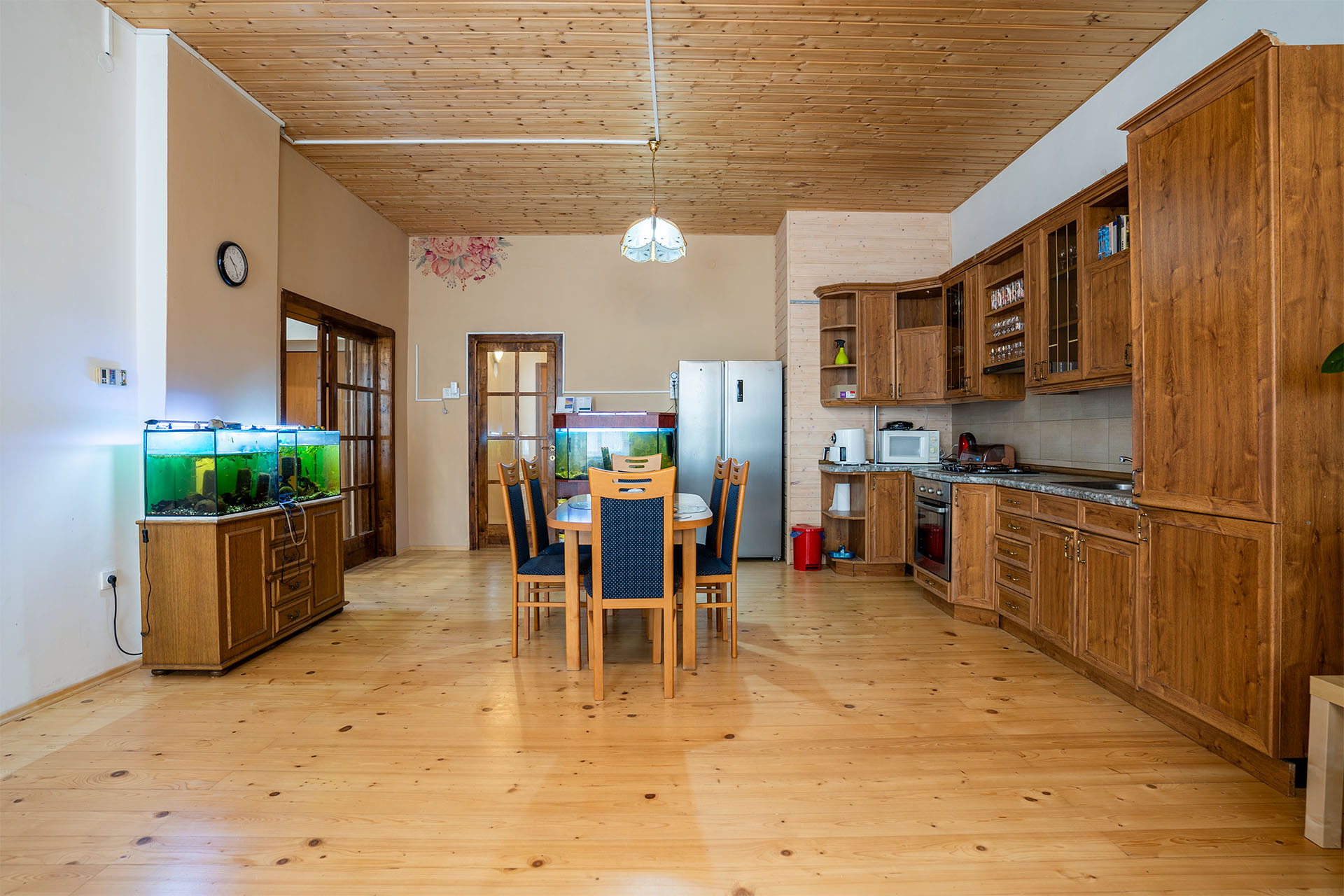 Dům je v dobrém technickém stavu – v prvním patře jsou nová dřevěná okna a zásadní rekonstrukce není nutná. K dispozici jsou všechny inženýrské sítě (elektřina, plyn, voda, kanalizace, optické připojení i kabelová televize). Zadní nádvoří navíc poskytuje možnost parkování.