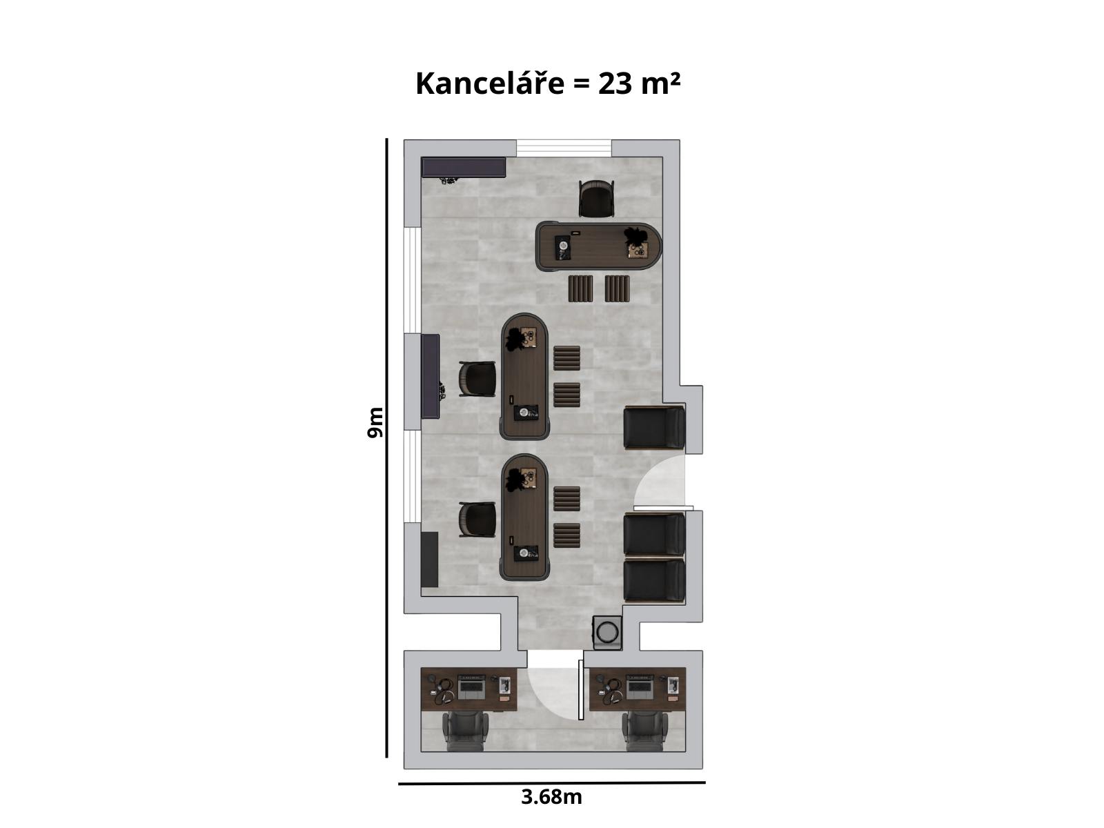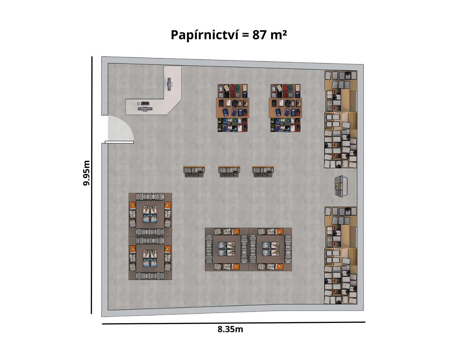 V přízemí domu už dnes fungují dva zavedené obchodní prostory – papírnictví (87 m²) a kancelář se zadním vstupem (23 m²). Oba prostory jsou dlouhodobě pronajaty a přinášejí novému majiteli pravidelný příjem od prvního dne.